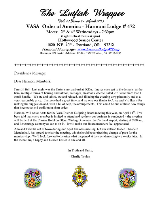 Vasa Order Of America, Harmoni Lodge # 472