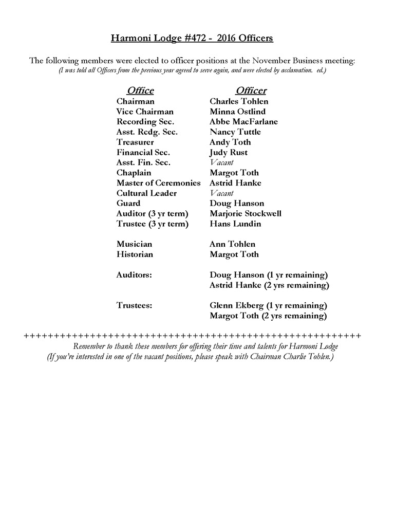 Vasa Order Of America, Harmoni Lodge # 472