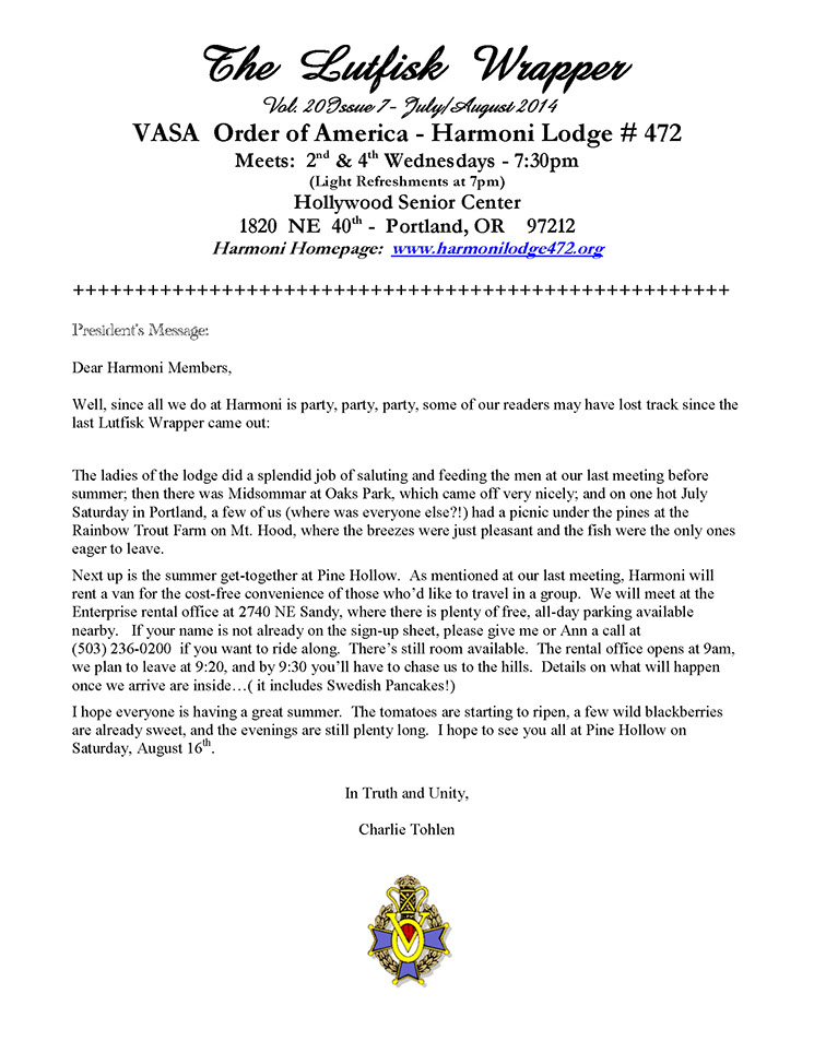 Vasa Order Of America, Harmoni Lodge # 472